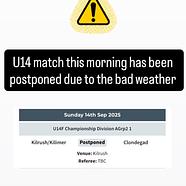 Please note the U14 match due to take place this morning has been postponed due to the bad wea...